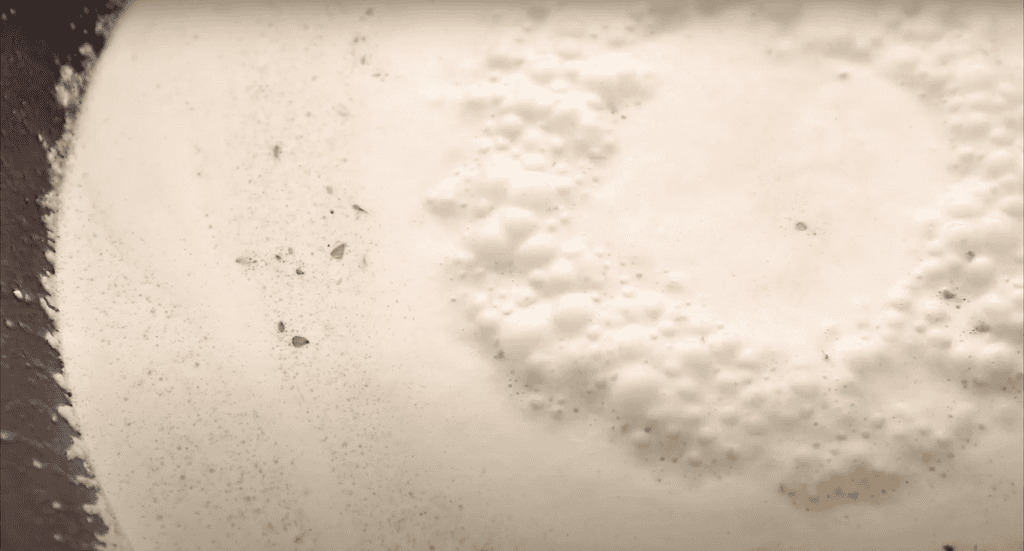 Next, stir in ½ cup of low sodium chicken broth, 1 cup of heavy cream, ½ cup of grated parmesan cheese, ¼ cup of fresh lemon juice, and 1 teaspoon of fresh thyme leaves. Stir to fully combine ingredients, and bring the sauce to a boil; then reduce to a simmer, and allow it to thicken for about 5 minutes.