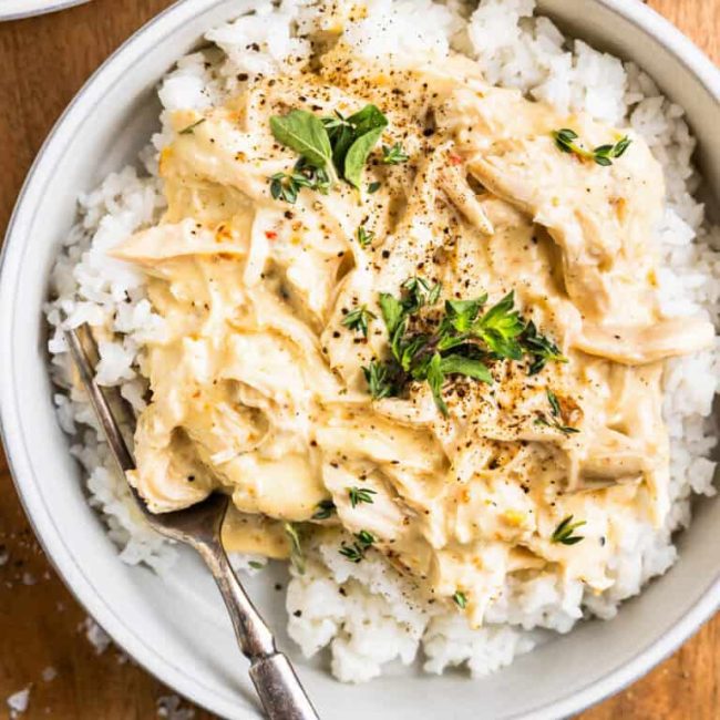 Mix the shredded chicken back into the slow cooker until well incorporated with the other ingredients. Serve Crockpot Italian chicken over rice or pasta.
