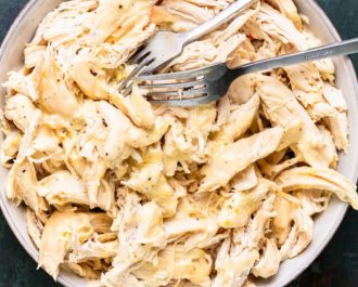 - Remove the chicken breasts from the Crockpot and shred using forks.