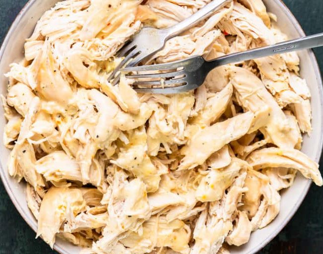 - Shredding Italian chicken directly in the Crockpot is super easy, but you can also shred it on a plate for more even shredding.